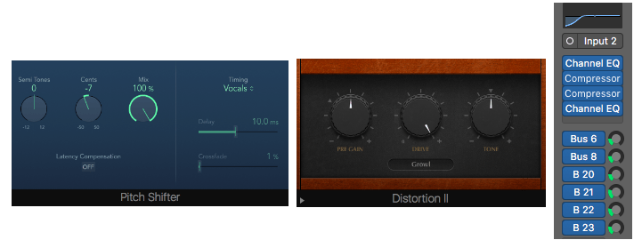 Acoustic guitar: As I recorded the guitar with one microphone, adding a Chorus effect gave the guitar more depth and tone.
