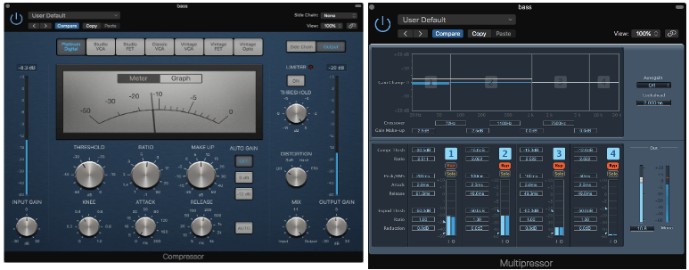 The use of a compressor with a high ratio and a longer release time of 220.0 ms made the bass volume sustain longer and feel more controlled. I then enhanced this with the use of a multiband compressor whereby you can compress certain bands of frequencies to boost particular tones (I gained a better understanding of this plugin with help from https://www.youtube.com/watch?v=AohfN4HU8Mo and https://macprovideo.com/article/mixing-and-mastering/mixing-tips-understanding-multiband-compression). Whilst bypassing the other 3 bands of frequencies, I only focused on the lows at 20 Hz to 72 Hz, and this gave extra dynamic and body.